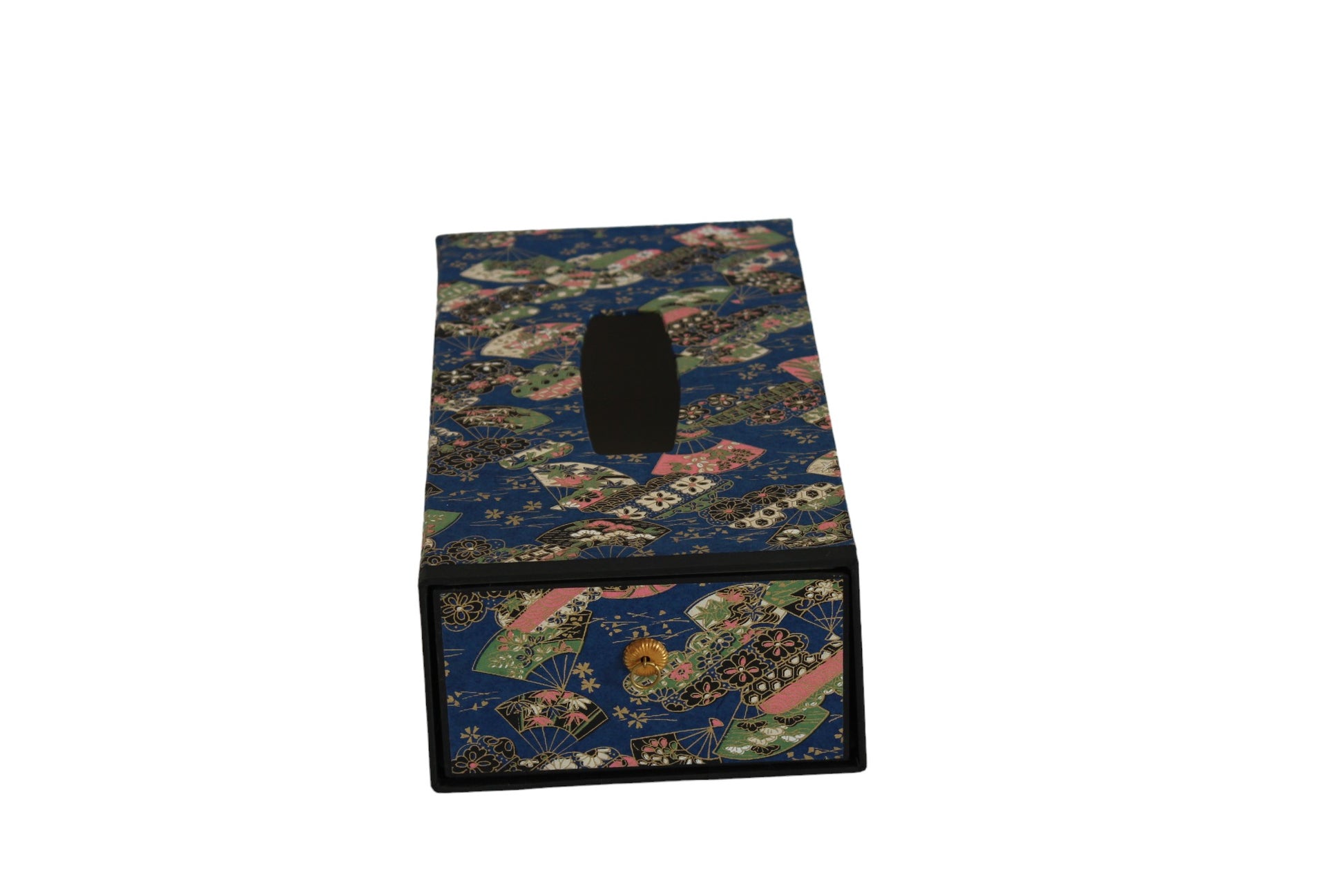 This tissue box is handmade by a Japanese artisan using Washi Yuzen paper (handcrafted paper made in Japan since the 7th century) from Kyoto.