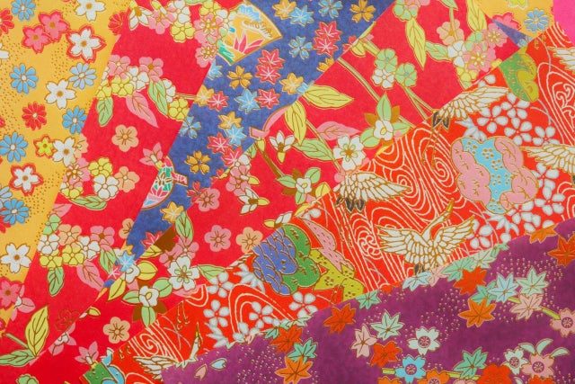 Comme la teinture yuzen des kimonos, le Washi yuzen est un type de papier japonais provenant de Kyoto qui a été magnifiquement teint avec des motifs japonais traditionnels en utilisant une palette de couleurs.