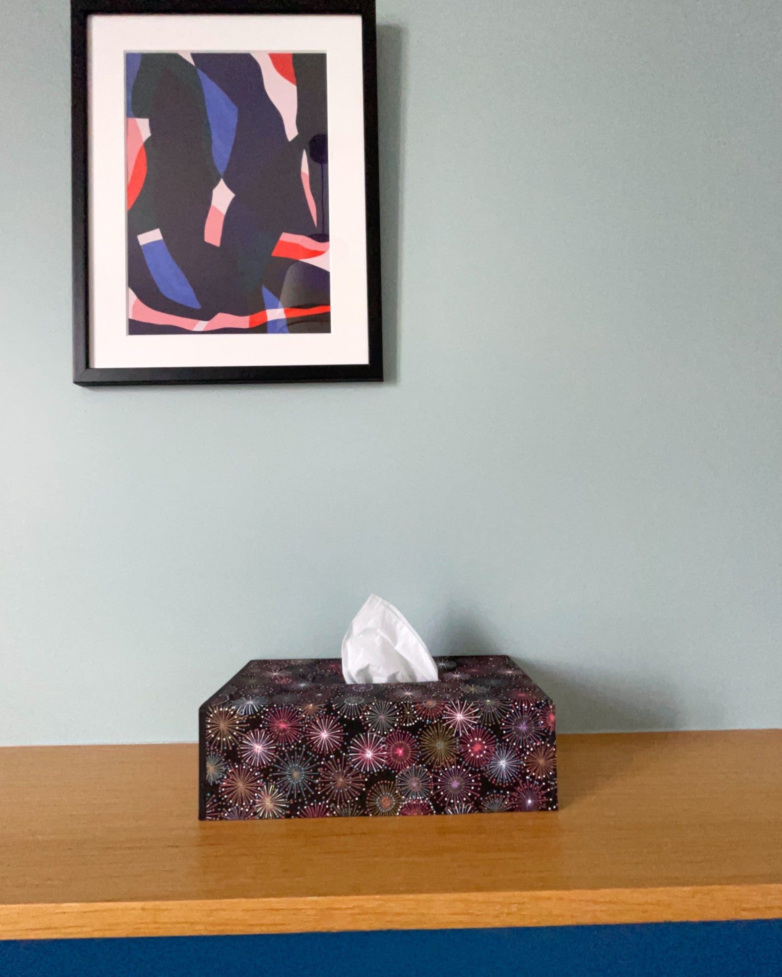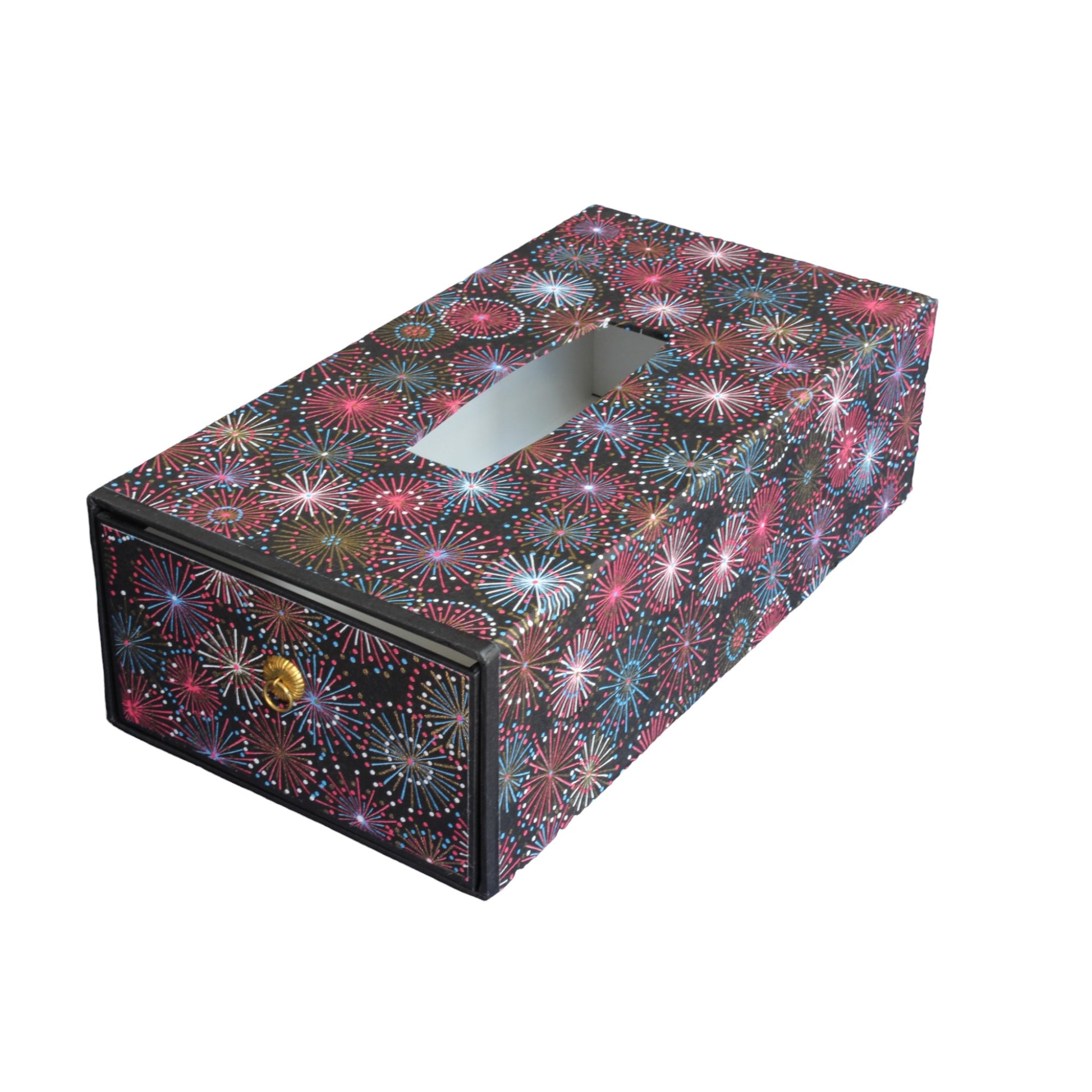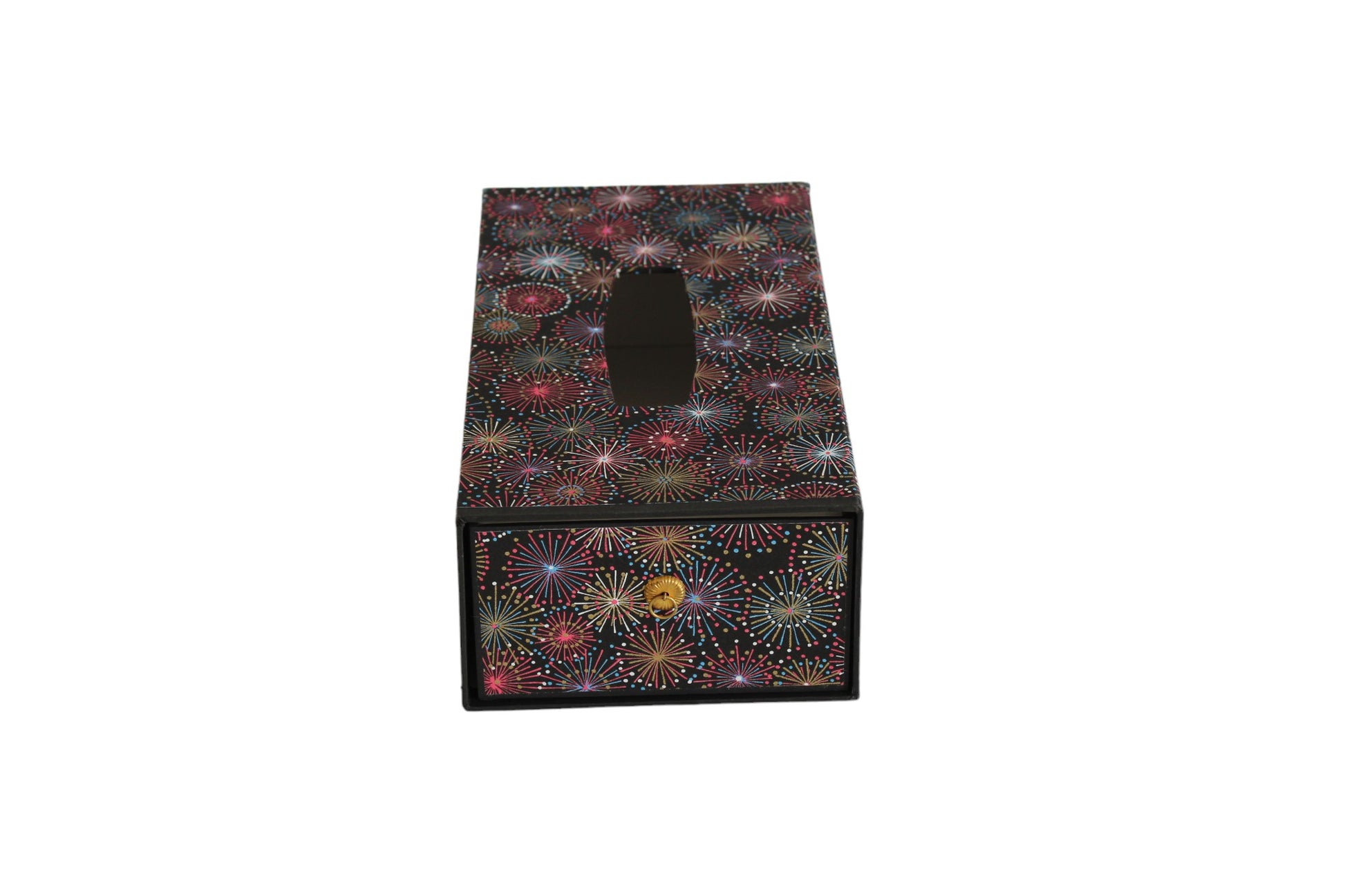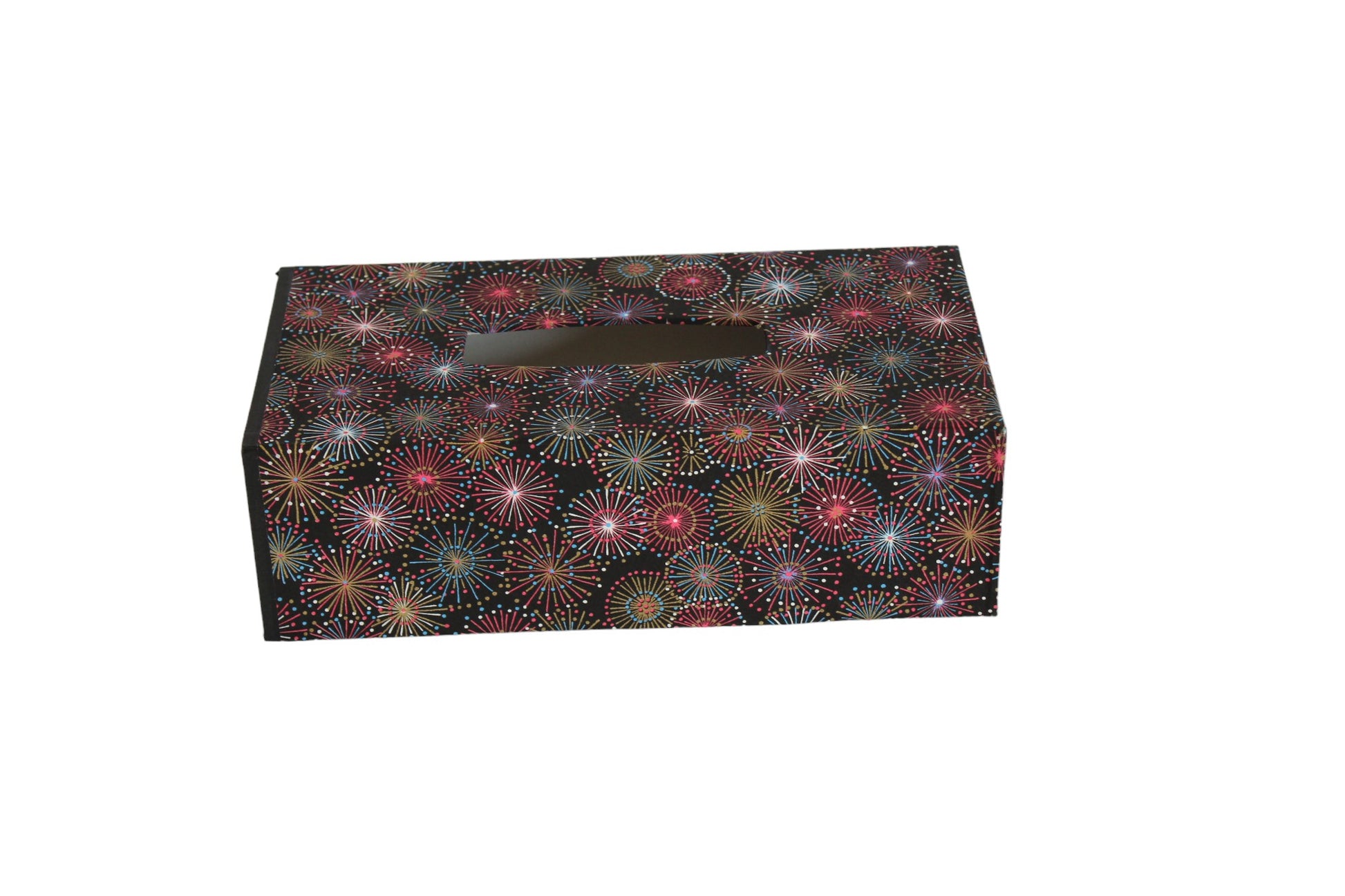 Cette boîte à mouchoirs est fabriquée à la main par un artisan japonais à partir de papier Washi Yuzen (le papier fabriqué artisanalement au Japon depuis le VII e siècle) de Kyoto.