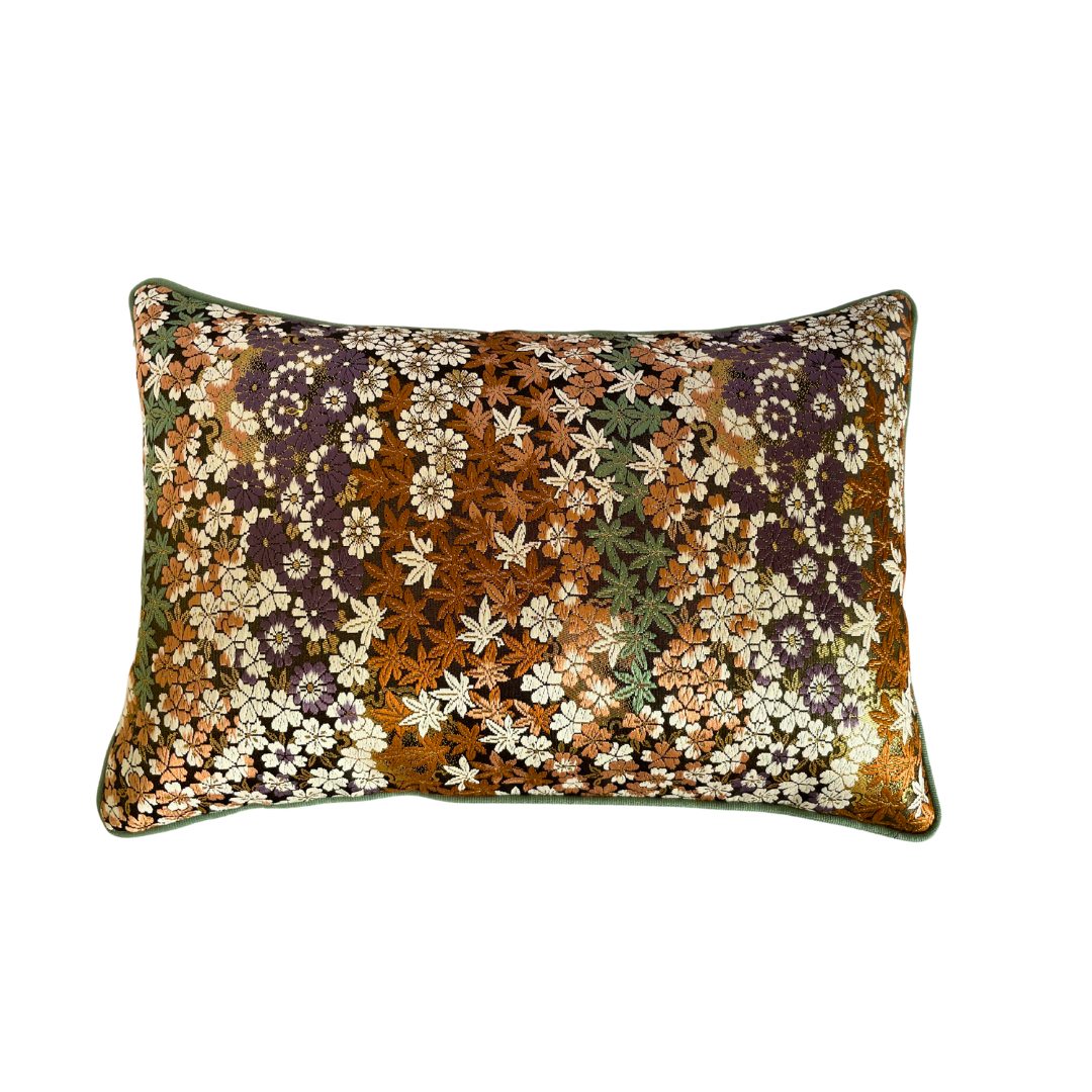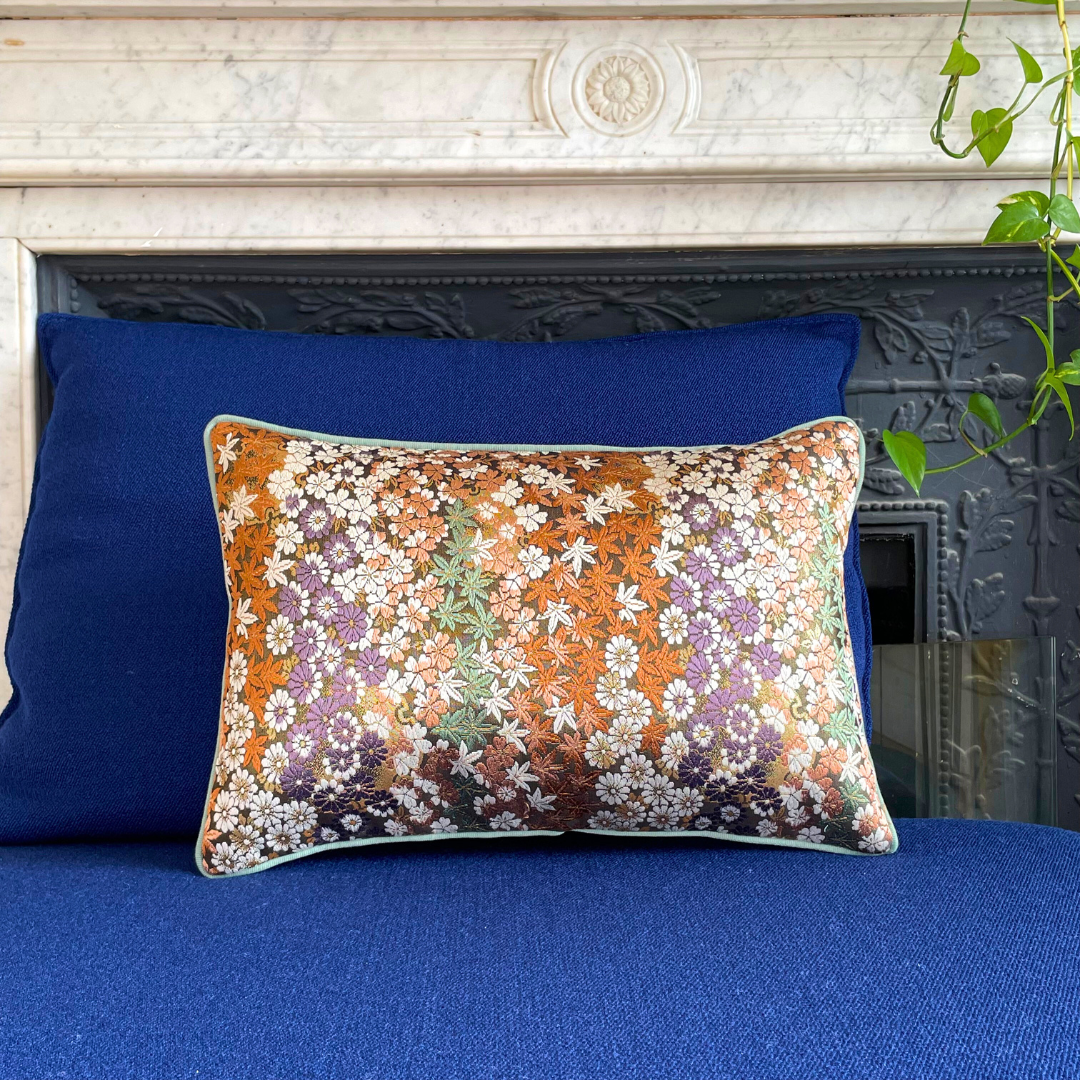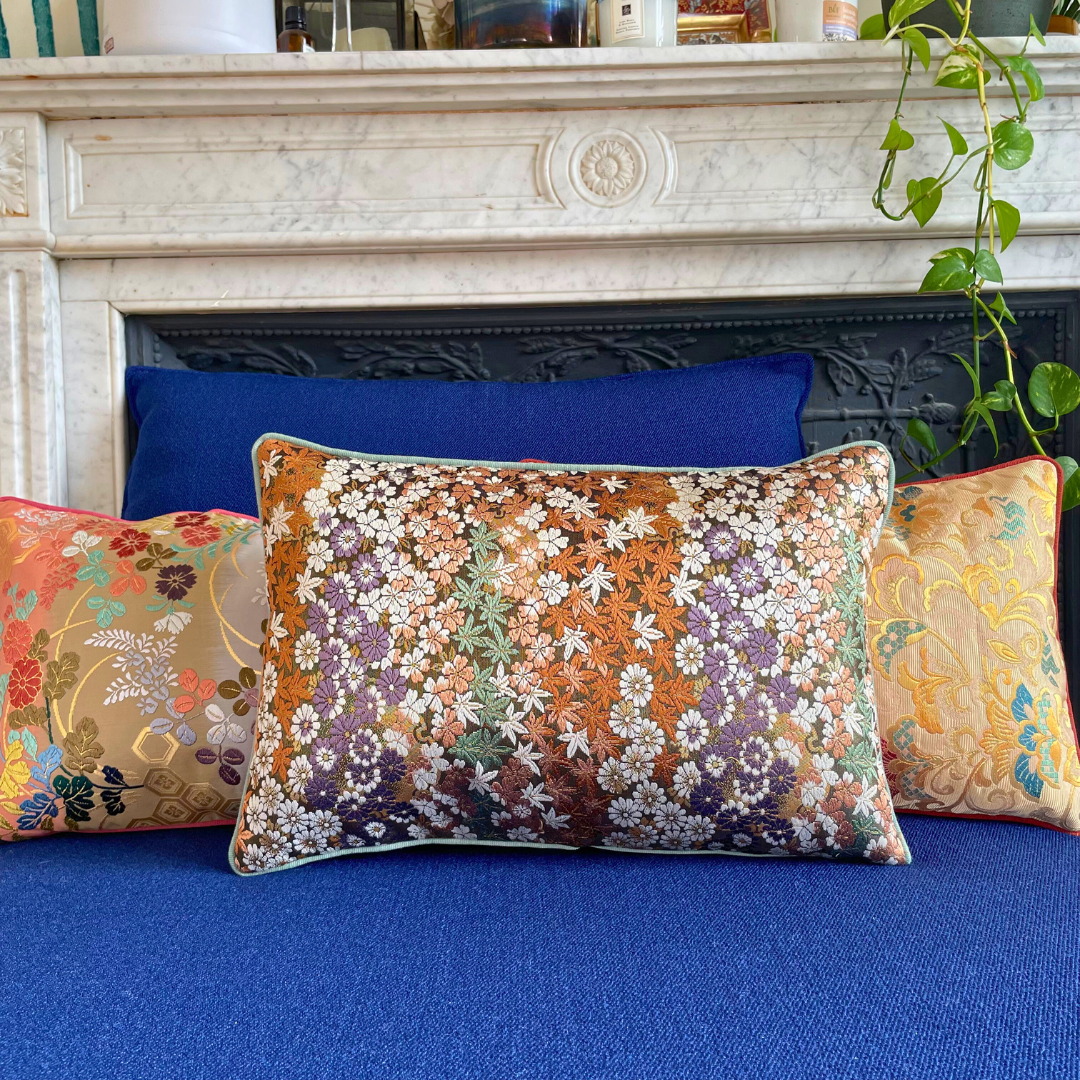 L'Obi vient du Nishijin, Kyoto au Japon, et ce coussin est confectionné artisanalement à Paris.