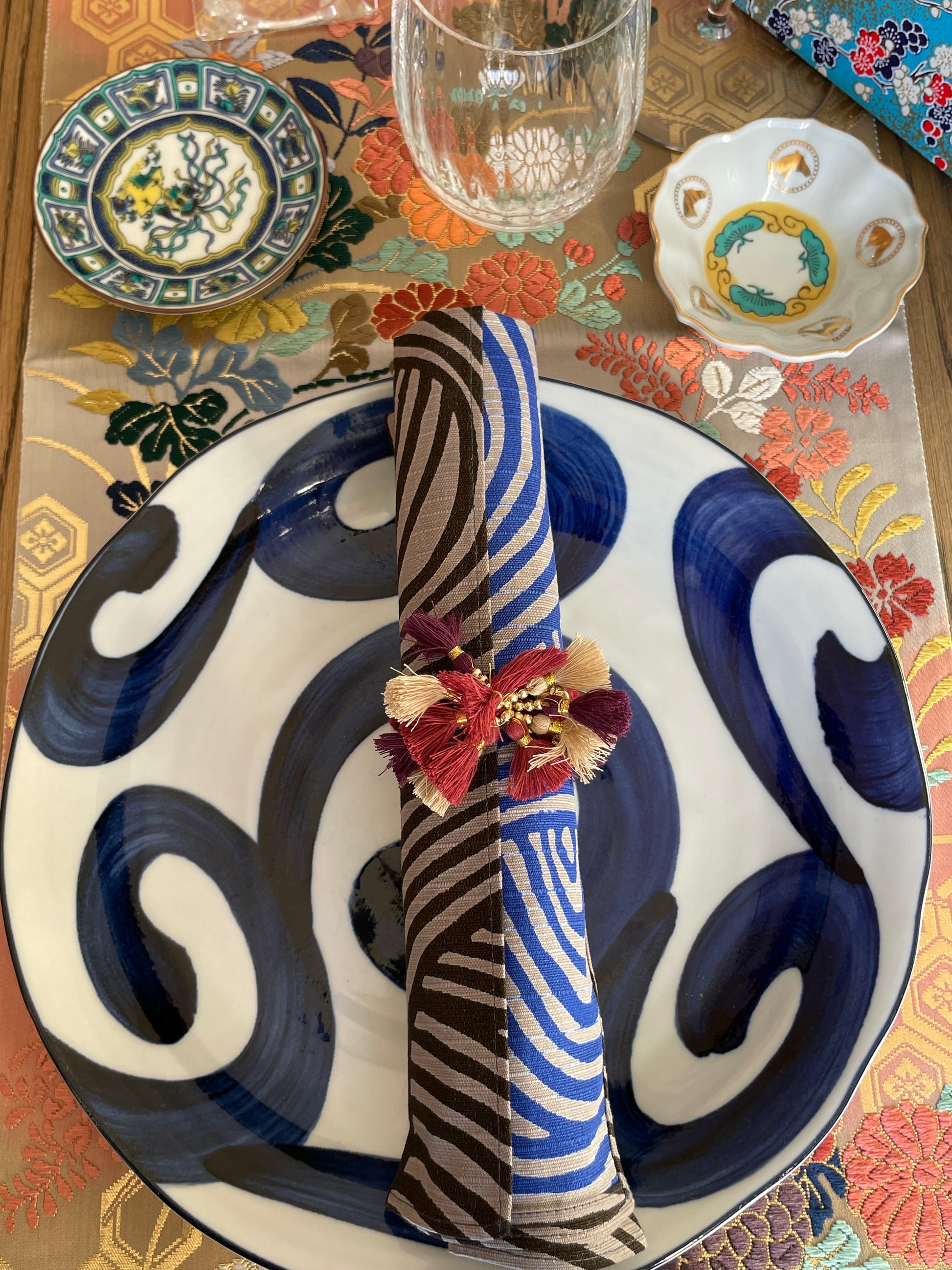 MAISON MIYABI vous propose deux manières de l'utilisation : Serviette de table pour un repas convivial, une occasion festive et l'usage quotidien, Furoshiki pour emballage écologiste.