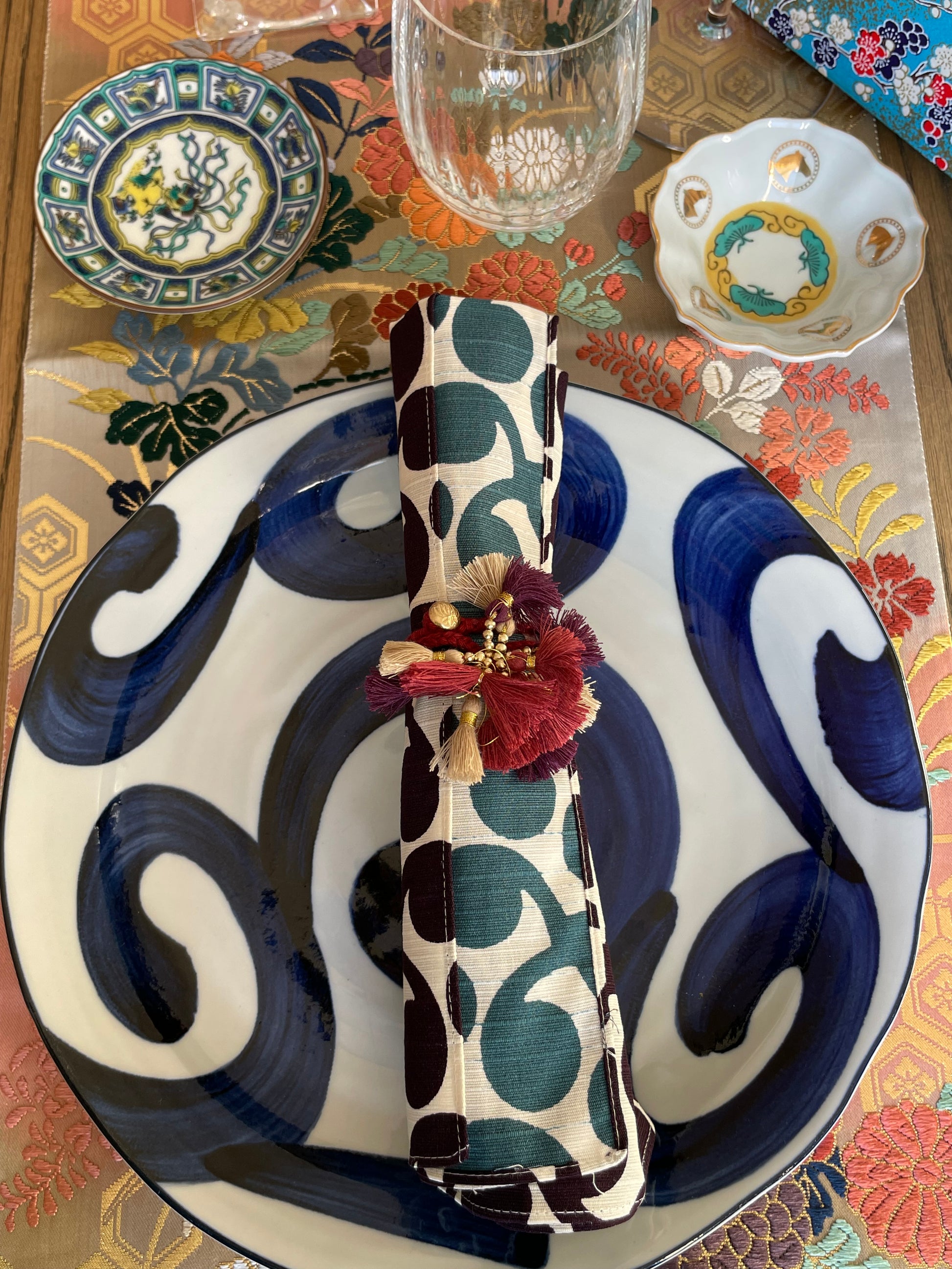 MAISON MIYABI vous propose deux manières de l'utilisation: Serviette de table pour un repas convivial, une occasion festive et l'usage quotidien, Furoshiki pour emballage écolo.