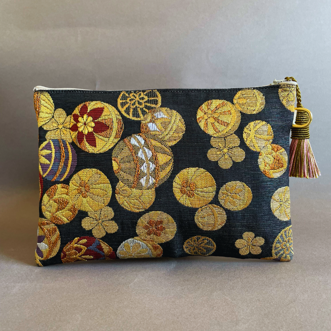 Ce motif met en scène le Temari, le ballon de fil traditionnel japonais, brodé sur un obi en pure soie. Bien plus qu’un jouet ancien, le Temari est un symbole de vœux sincères : ses fils entrelacés représentent les liens du cœur et une vie harmonieuse et durable.