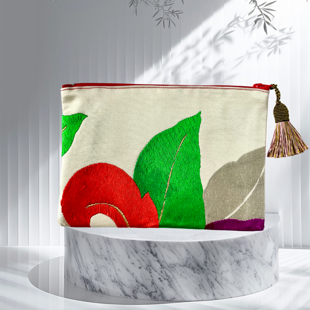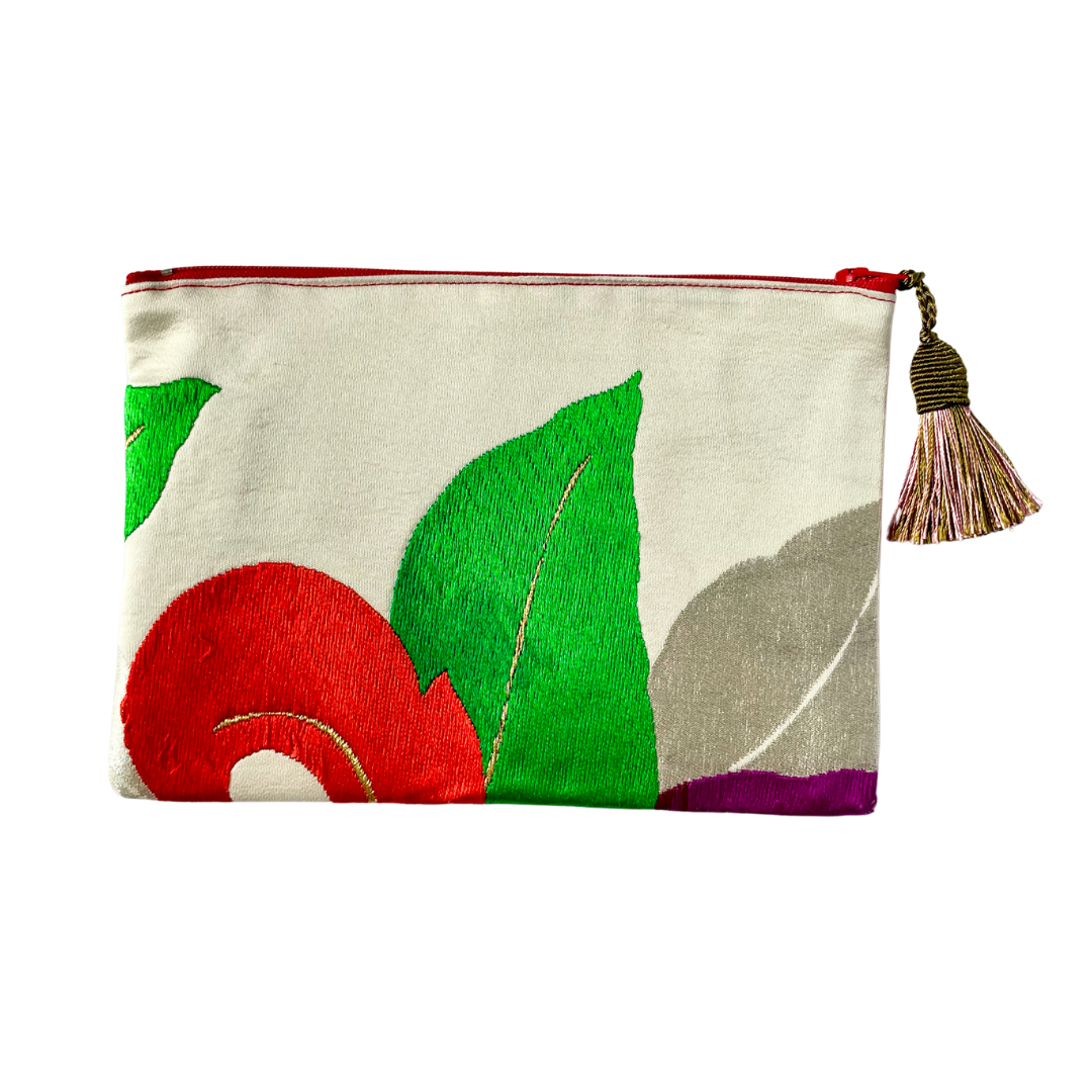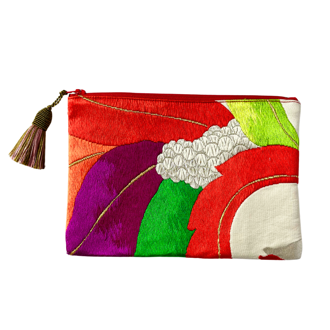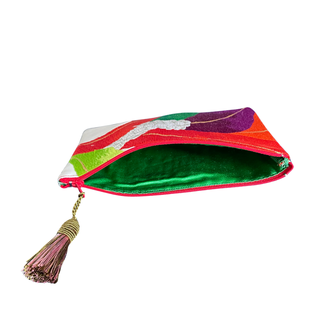 Cette pochette a été fabriquée par un obi entièrement en soie avec le motif de Yuri (Lys). En tant qu'une pochette cosmétique ou sac de soirée, pour mieux organiser votre sac ou pour ajouter un petit tonus à votre intérieur... Accompagnez cette pochette comme votre petit compagnon !