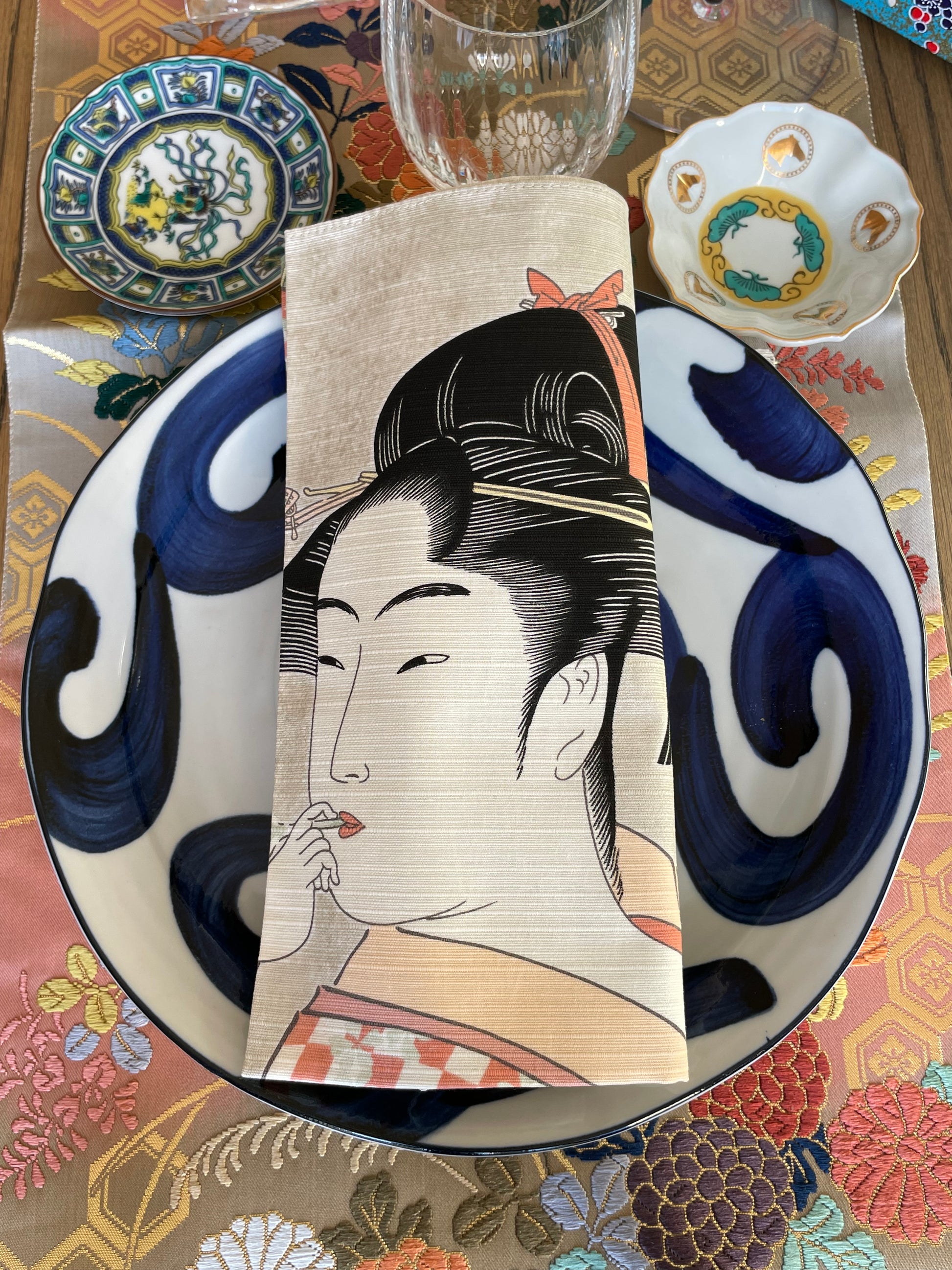 Serviette Furoshiki Ukiyo-e : Poppin (La Femme qui souffle dans le verre)